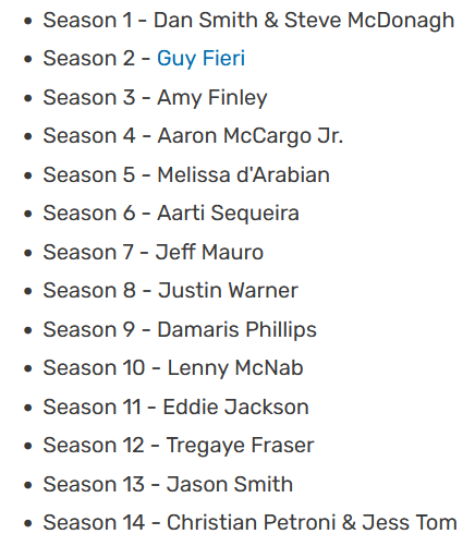 Jeff Mauro is popular, he's been on the show The Kitchen for years. And I remember seeing Melissa d'Arabian for awhile.
